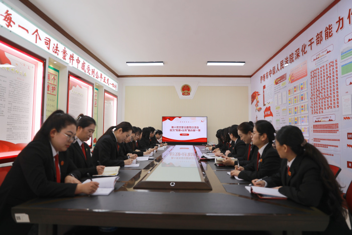 活动伊始,支部书记带领全体党员干警集中研学习习近平法治思想、习近平总书记关于机关党建工作的重要论述。会议强调,党建工作与法院业务工作相辅相成、辩证统一,如同车之双轮、鸟之双翼,缺一不可。全体干警必须牢牢坚守“抓党建带队建促审判”工作主线,坚决破除党建与业务“两张皮”问题,以高质量党建引领高水平司法实践,让党建工作成为推动法院业务发展的“红色引擎”。此次理论学习,进一步统一了思想、凝聚了共识,为后续建言献策环节筑牢了坚实的理论根基。